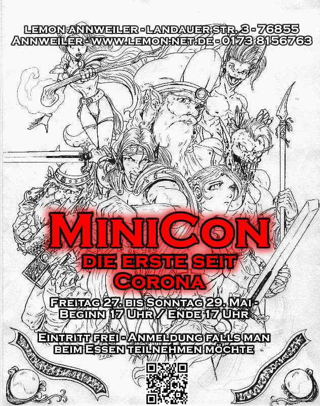 MiniCon - Die erste seit CoronaEine Anmeldung ist nur zur Essensplanung notwendig (siehe unten).Packt eure Würfel, Zauberstäbe, Laserpistolen und hinein ins Abenteuer. Oder bereitet euch aufs Leiten einer Runde vor und stürzt eure Mitspieler ins Verderben. Das dominante System wird erfahrungsgemäß "Das Schwarze Auge" in der 4ten Edition sein, es finden sich aber auch regelmäßig Meister und Runden für andere Welten.