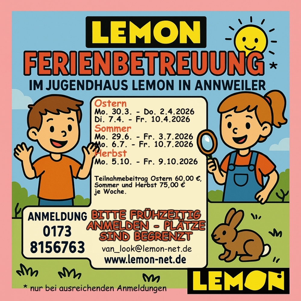 Eintragung im Lemon oder Rückmeldung an Chris van Look (van_look@lemon-net.de, 0173 8156763 ).