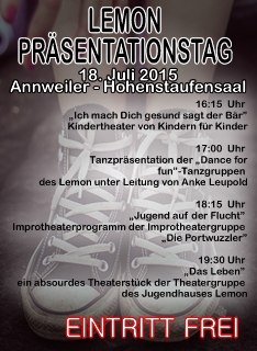 ab 19:30 Uhr "Das Leben" ein absurdes Theaterstück der Theatergruppe des Jugendhauses Lemon