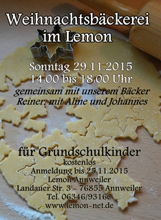 Plätzchenbacken gehört vor Weihnachten einfach dazu. Besonders schön ist natürlich, wenn es selbst gemachte Plätzchen sind. Gemeinsam werden verschiedene Sorten Weihnachtsplätzchen gebacken. Chef in der Weihnachtsbackstube des Lemons ist unser Ehrenamtlicher Reiner - von berufswegen Bäcker! Aline und Johannes unterstützen die Kinder beim herstellen der süßen Leckereien. Für die Planung ist eine Anmeldung nötig. Bitte zum Termin eine Box für den Transport der Weihnachtsplätzchen mitbringen.